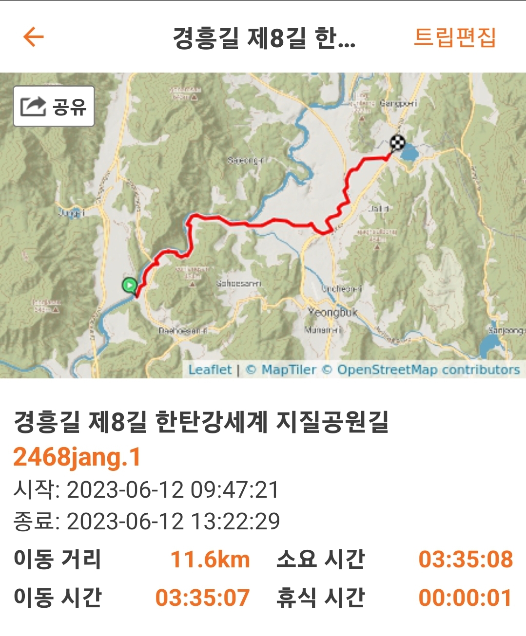 | 경흥길제6-1길 만세교길 신북면 행정복지센타-만세교-미륵사-영중농협(양문1리 버스정류장) 11.8km 4시간 (0) | 2023.06.07 |